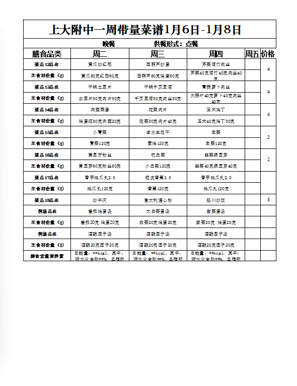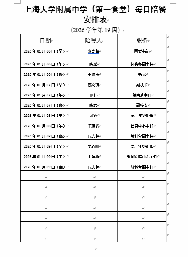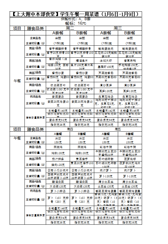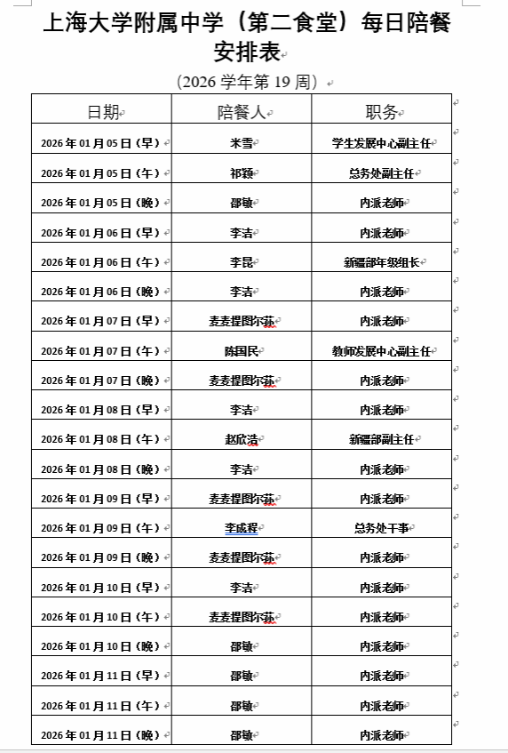 上一条:【上大附中本部食堂】学生午餐一周菜谱及陪餐公示(2026年1月12日-2026年1月16日) 下一条:【上大附中本部食堂】学生午餐一周菜谱及陪餐公示(2025年12月29日-2026年1月04日)