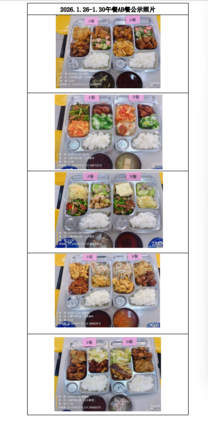 【上大附中本部食堂】学生午餐图片公示(2026年1月26日-2026年1月30日)