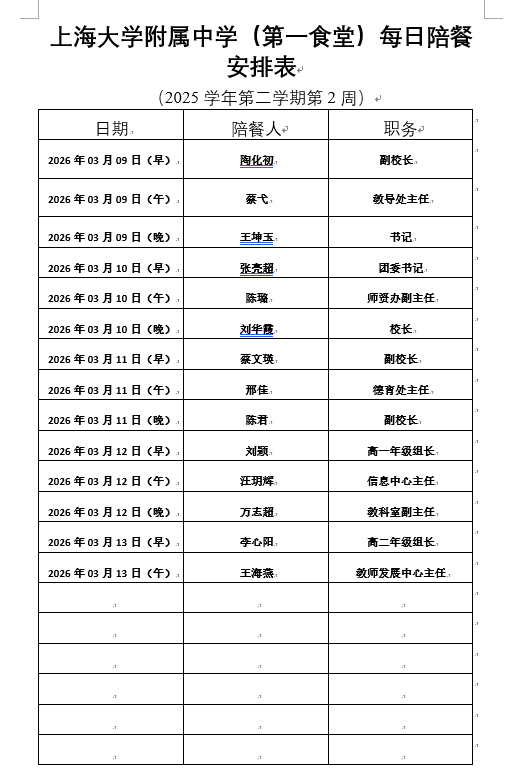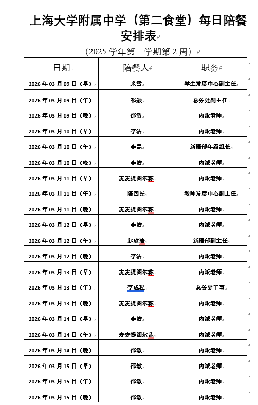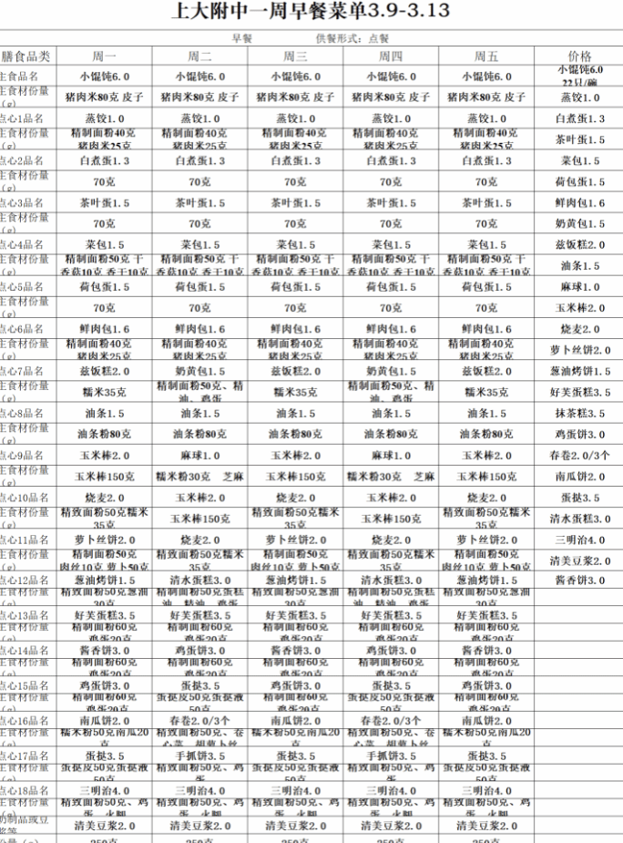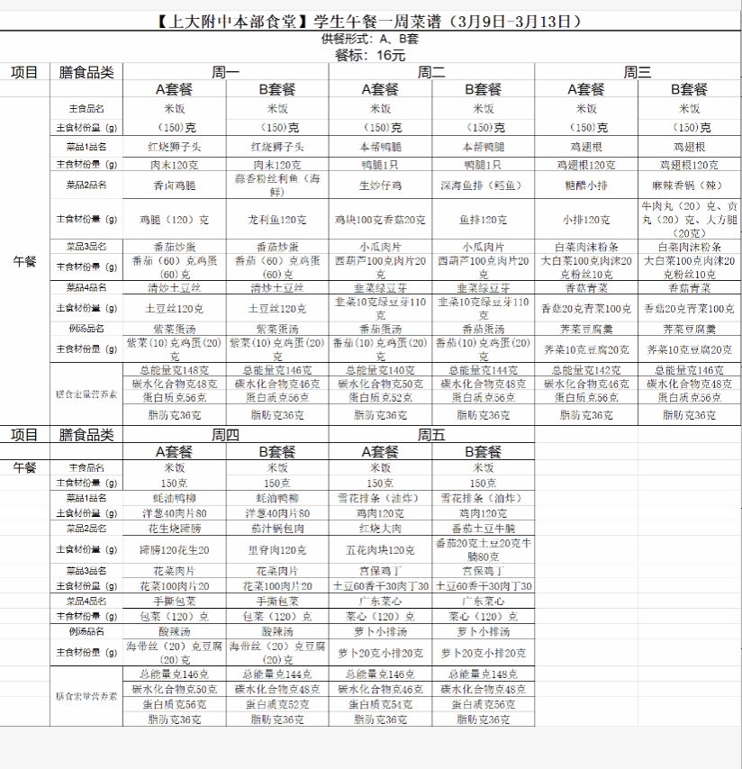 【上大附中本部食堂】学生午餐图片公示(2026年3月09日-2026年3月13日)