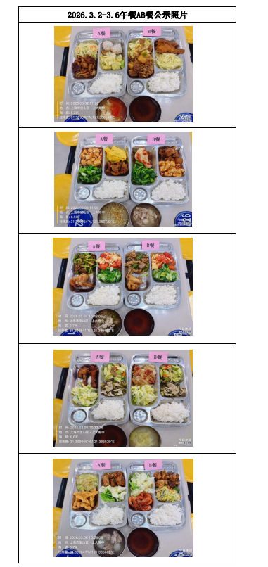 【上大附中本部食堂】学生午餐图片公示(2026年3月2日-2026年3月8日)