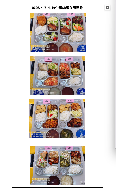 【上大附中本部食堂】学生午餐图片公示(2026年4月07日-2026年4月10日)