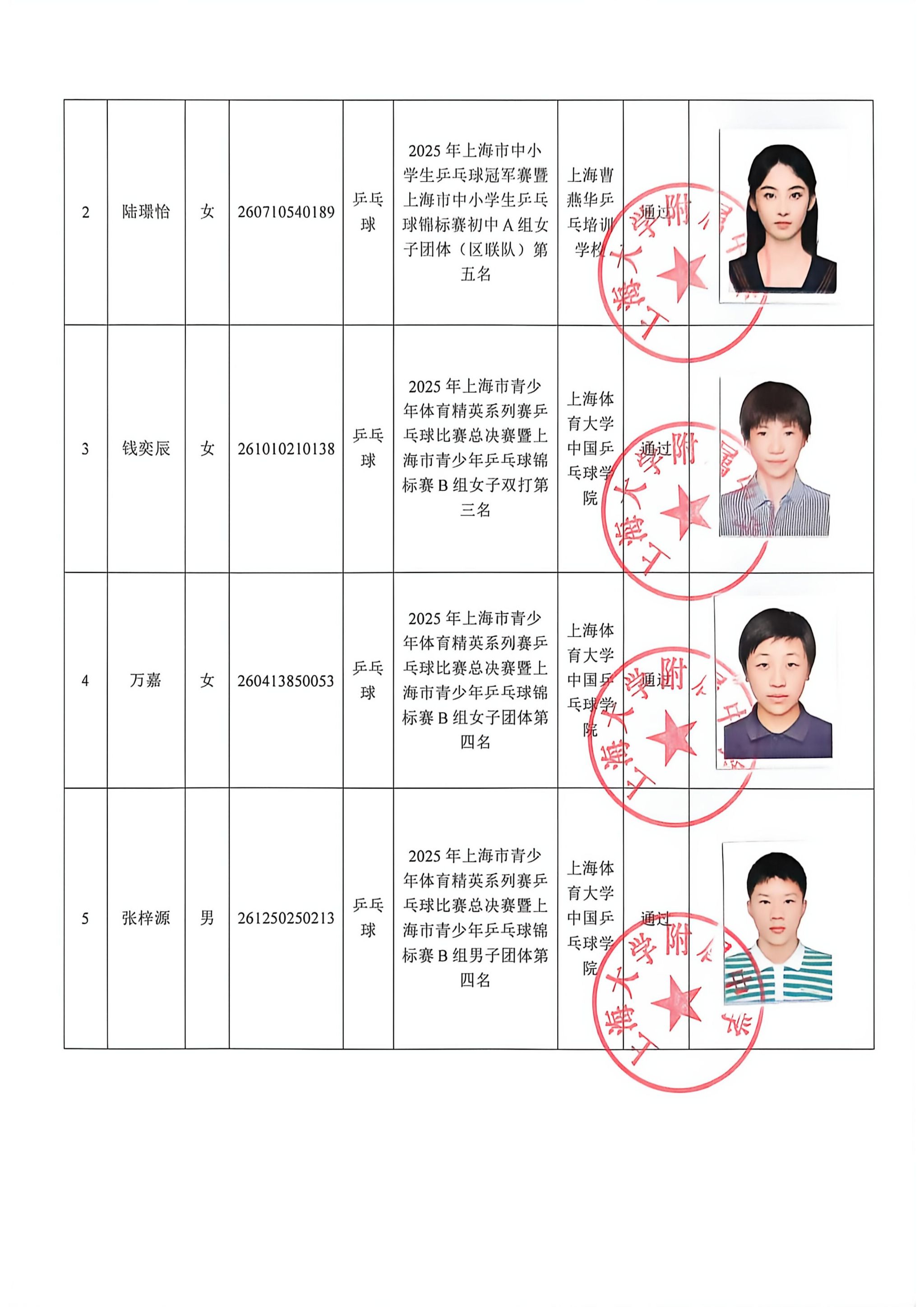 2026年上海大学附属中学招收市级优秀体育学生资格确认工作方案(乒乓球)