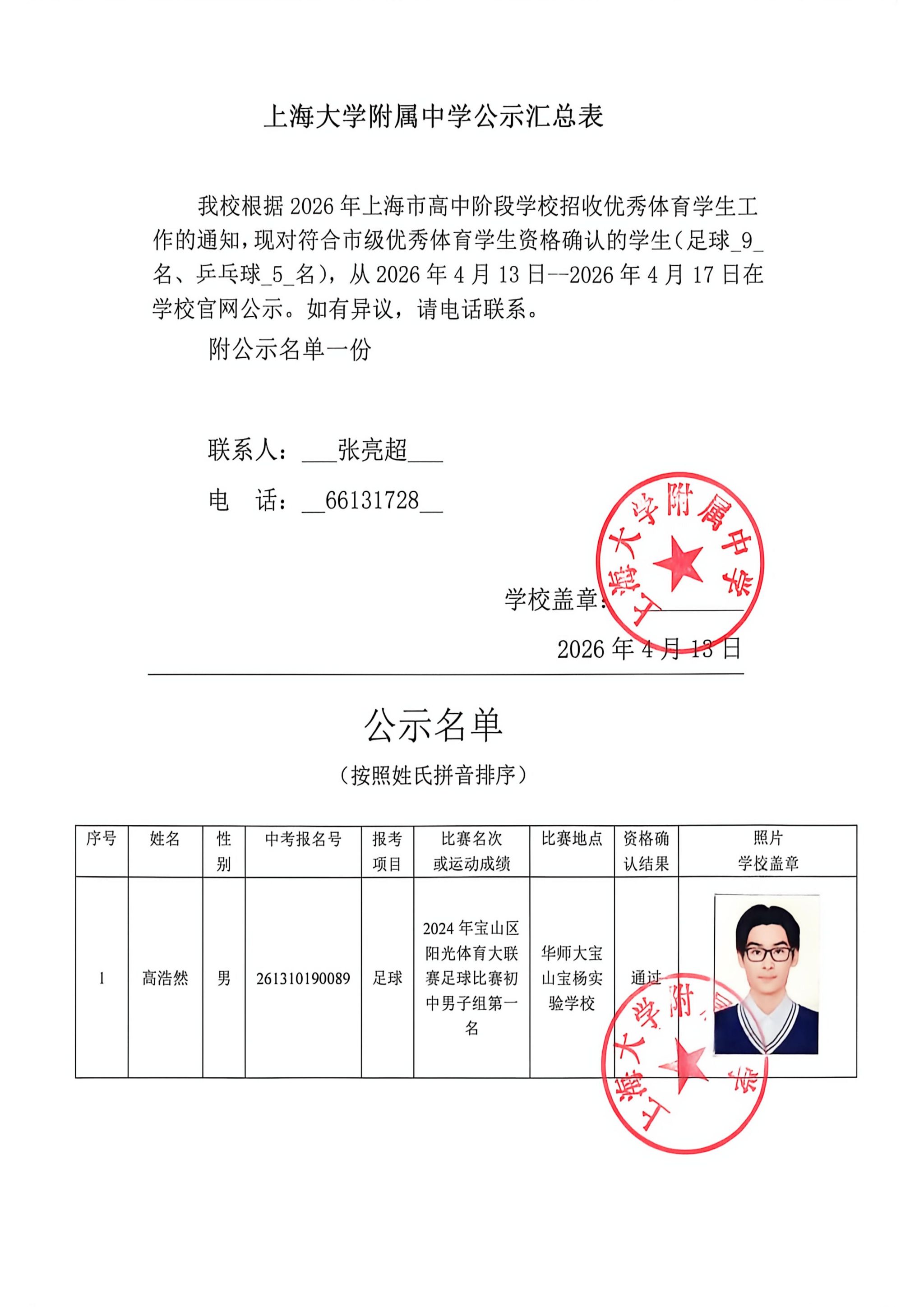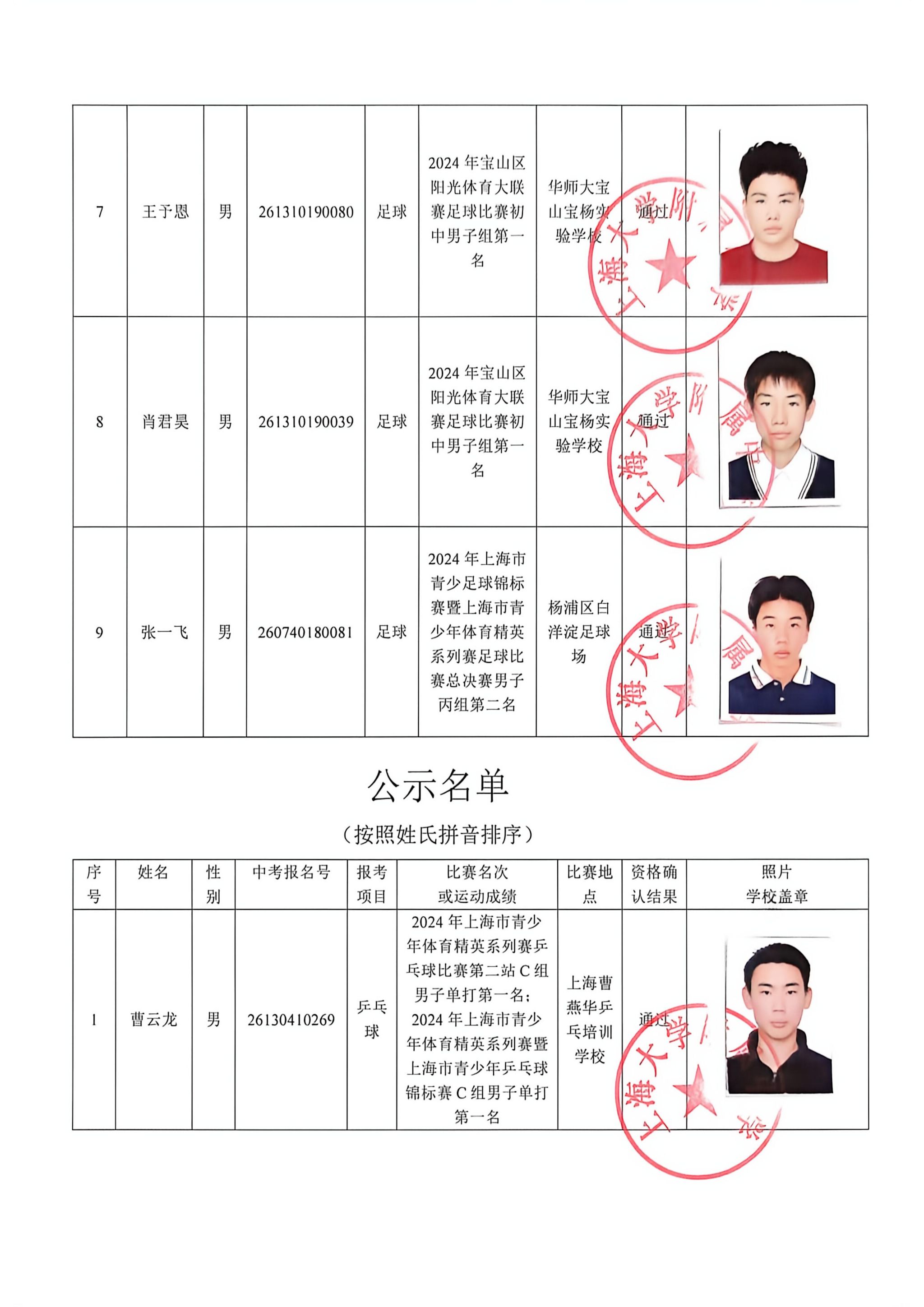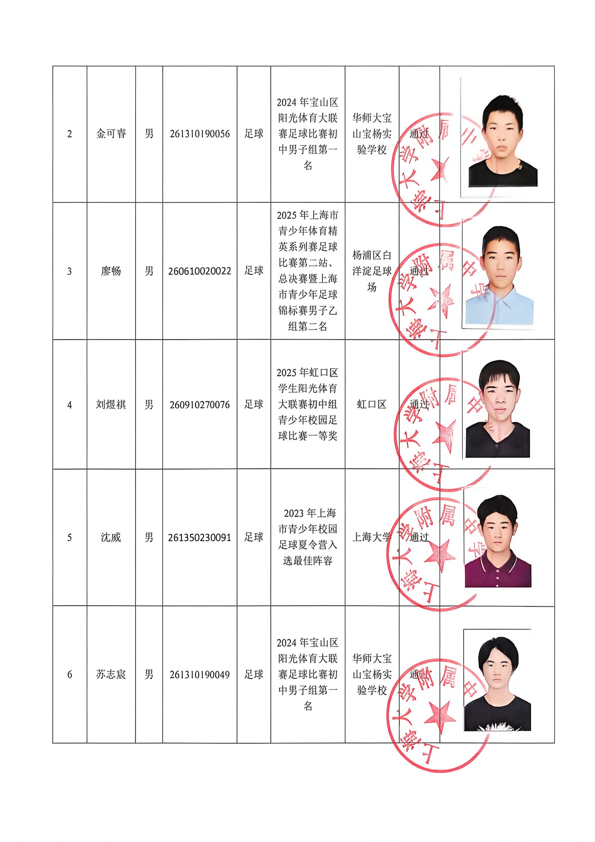 2026年上海大学附属中学体育骨干学生资格确认公示
